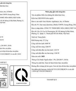 Thông Số Kỹ Thuật Chi Tiết Điều hòa Gree BD18HI | 18000BTU 2 chiều inverter