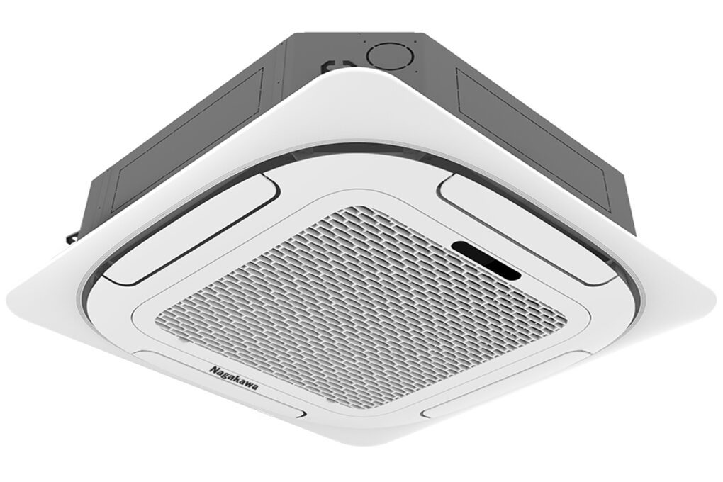 Máy lạnh âm trần Nagakawa 3 HP NT-C28R1T20 sở hữu thiết kế hình vuông với độ dày 24.5 cm phù hợp các công trình dự án nhà xưởng, văn phòng, nhà hàng.