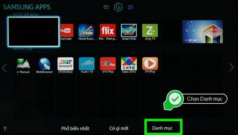 Cài app trên giao diện Smart Hub