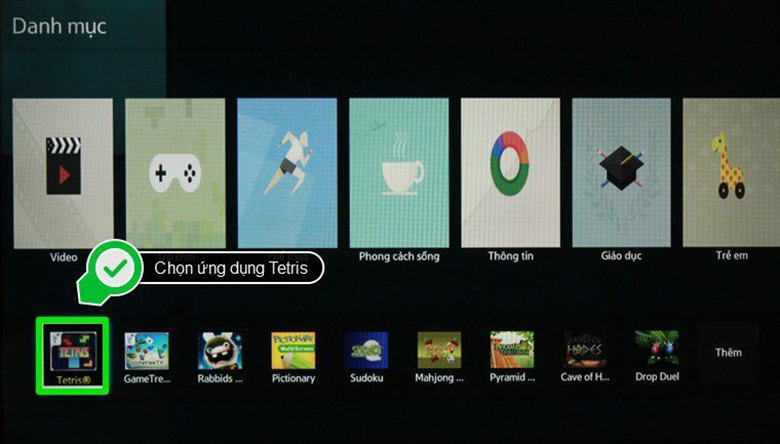 Bước 3: Chọn Danh mục → Chọn loại hình ứng dụng muốn tải (trò chơi, video, thông tin, giáo dục,…) và chọn ứng dụng tải về.