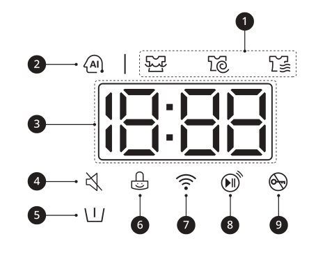 9 – Khóa có gạch chéo: Sáng lên khi chu trình bắt đầu và cửa được khóa.