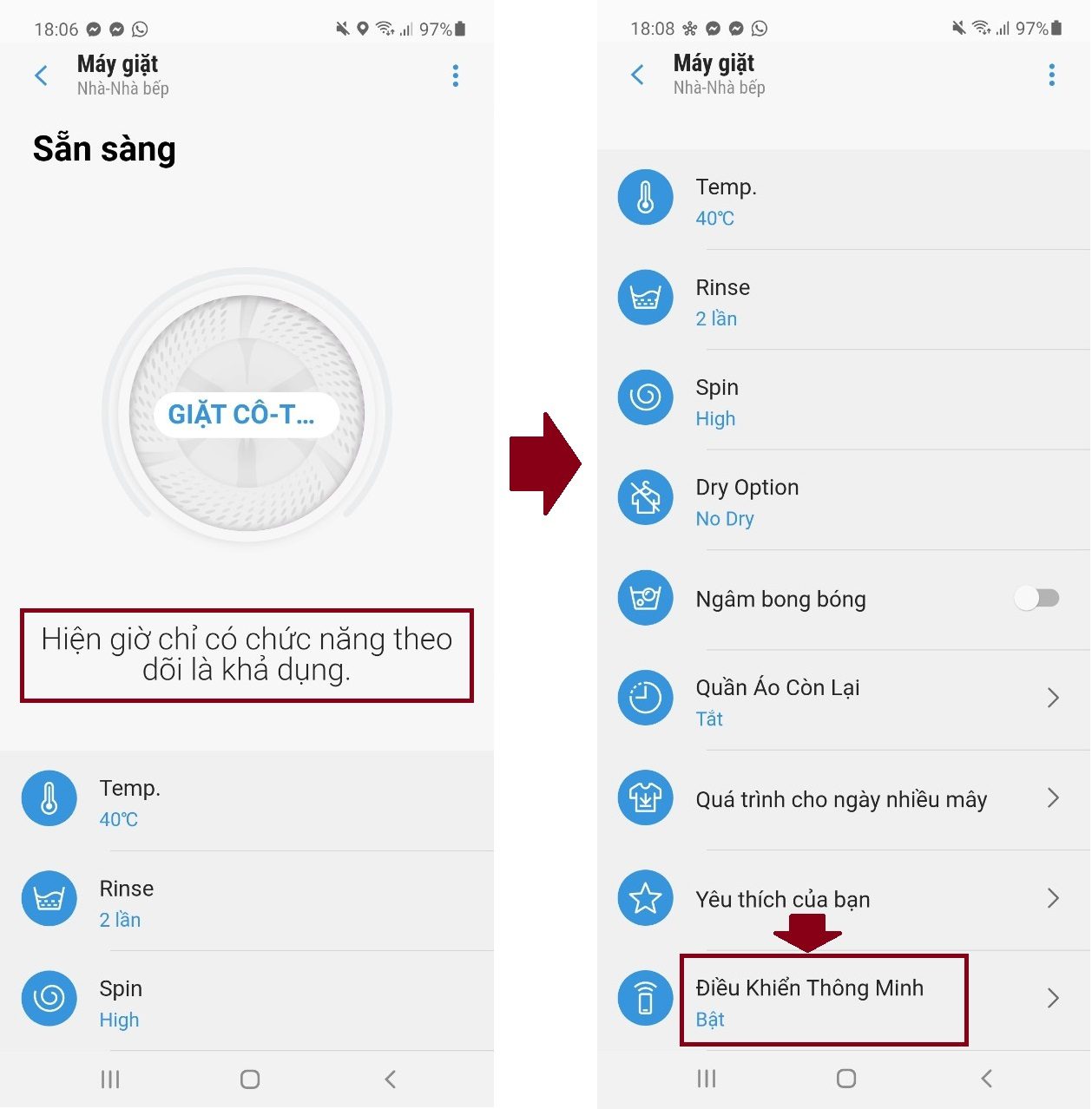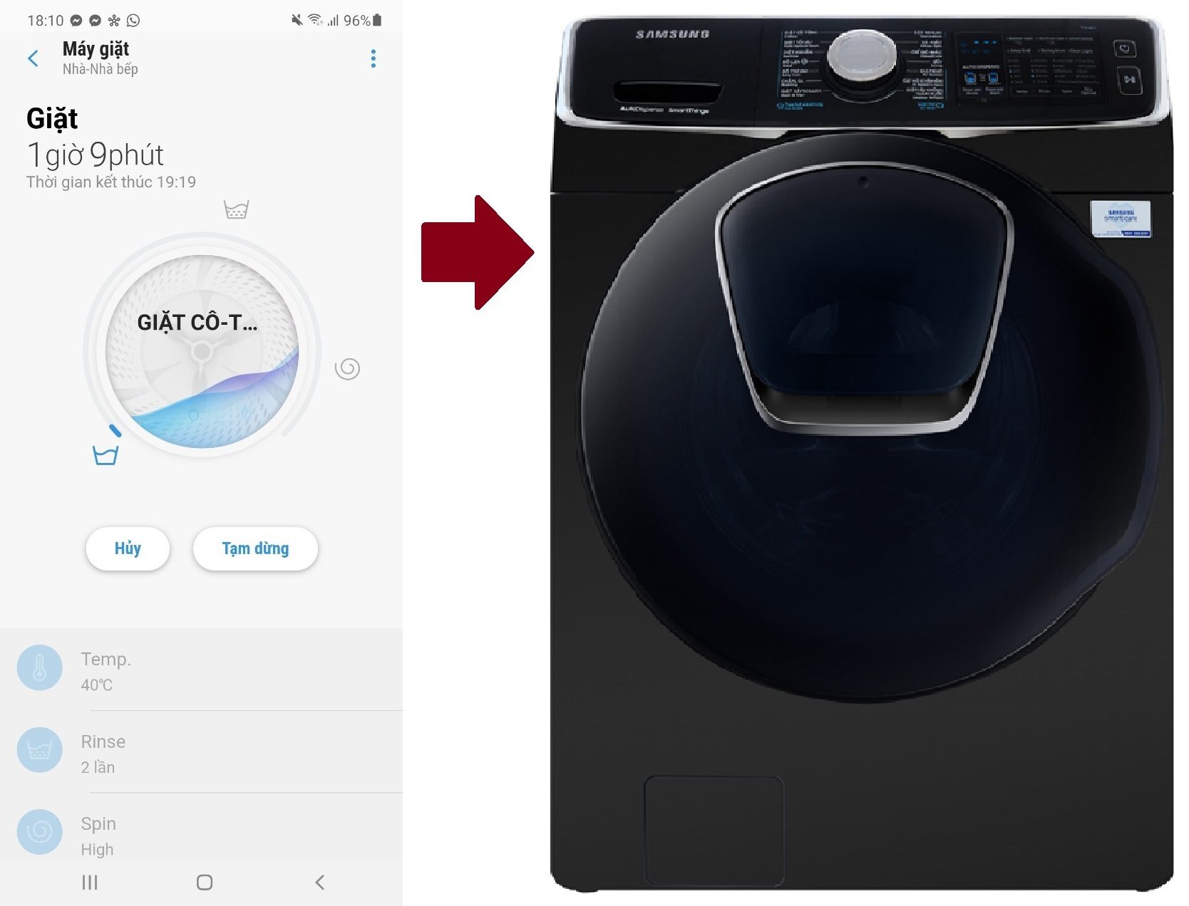 – SmartThings sử dụng được khi điện thoại và máy giặt đều có tính năng hỗ trợ.