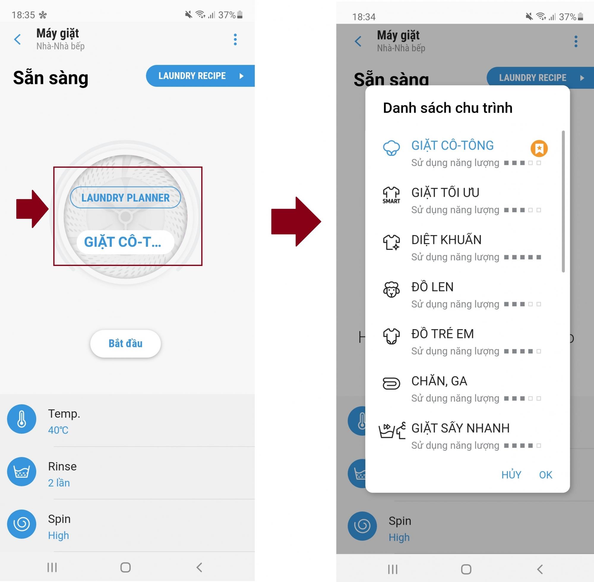 Lúc này bạn có thể chạm vào Laundry Planner để chọn chế độ giặt phù hợp.