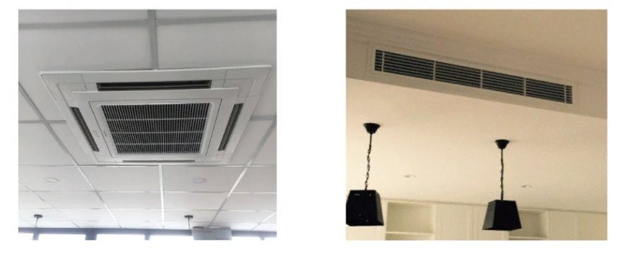 Bạn có thể dễ dàng phân biệt 2 loại điều này qua mặt lạnh: mặt điều hòa cassette có hình vuông hoặc tròn, còn mặt điều hòa nối ống gió có hình chữ nhật dài.