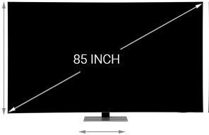 Hiện nay, đa số các dòng tivi 85 inch đều có tỉ lệ chiều dài:chiều rộng là 16:9, với 85 inch là kích thước đường chéo màn hình.