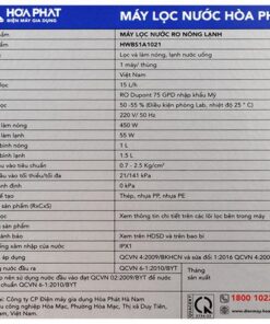 Thông Số Kỹ Thuật Chi Tiết Máy lọc nước Hòa Phát HWBS1A | 15L